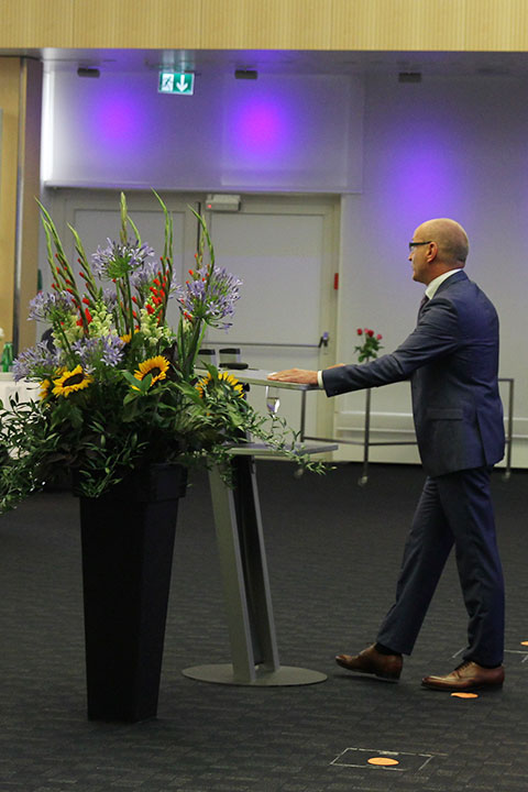 So wie der Live-Stream eine Premiere war, war es dieses Jahr auch das erste Mal, dass alle Lehrabgänger/innen trotz Militär anwesend sein konnten. Durch die limitierte Anzahl an Anwesenden liess der Saal eine Kabarett-Bestuhlung zu, was wiederum einen Apéro im kleinem Rahmen an den Tischen ermöglichte. Daniel Knecht, Standortleiter von Zürich und Rapperswil, begrüsste alle mit einem überglücklichen Prosit und eröffnete die Feier. Die Lehrabgänger Ivana Kurobasa und Max Ganz führten ihre Kolleginnen und Kollegen gekonnt mit einigen Lachern zurück in die Lehrzeit und frischten so viele schöne Erinnerungen auf. Der Geschäftsführer Christian Villiger gratulierte und überbrachte ebenfalls die besten Grüsse des Vorstandes.